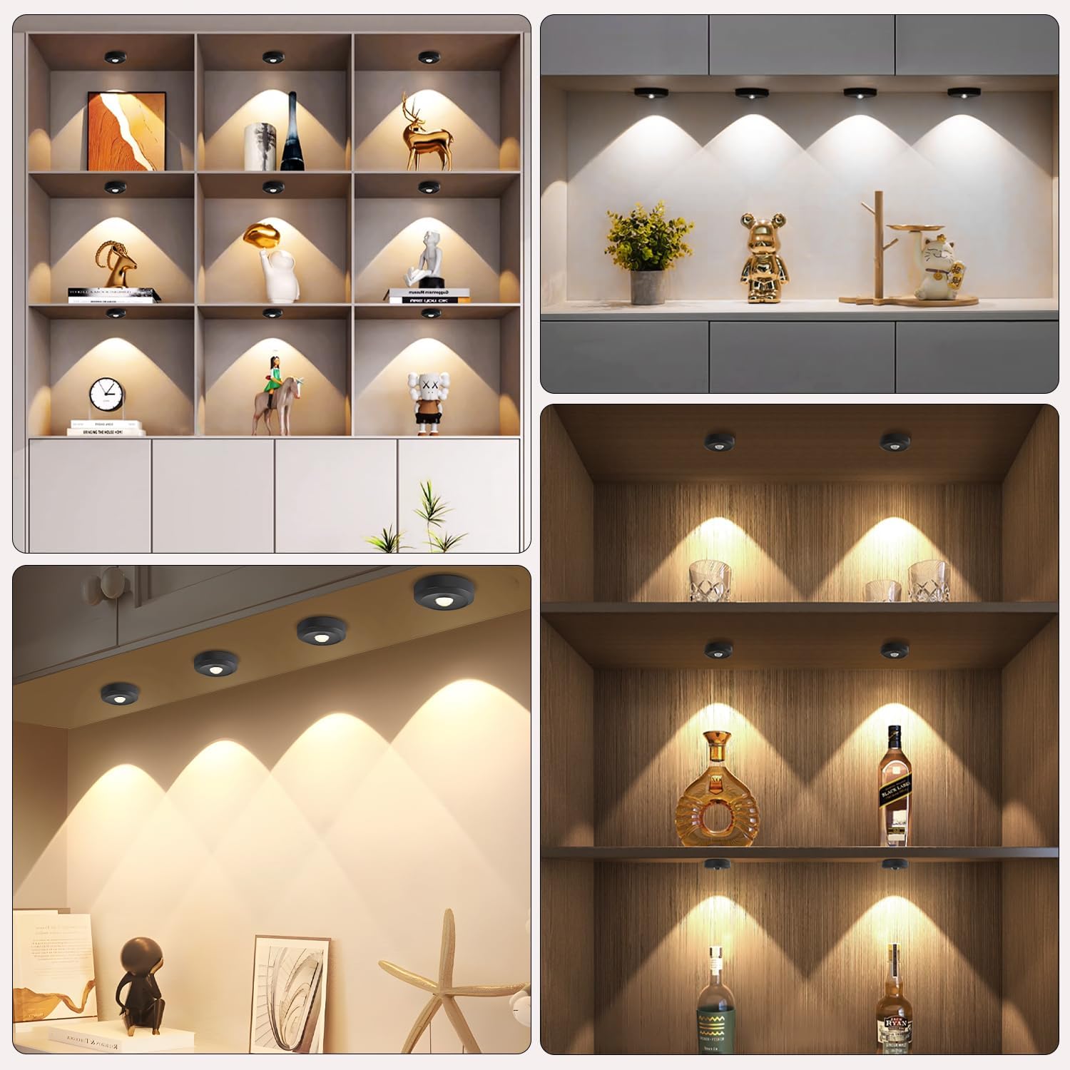 De LED puck lights zijn volledig draadloos en oplaadbaar, waardoor losse batterijen overbodig zijn. Dit maakt ze perfect voor plekken waar geen stopcontact aanwezig is, zoals kasten, campers of trappen. Door het subtiele formaat vallen ze nauwelijks op, terwijl ze toch krachtig licht geven.