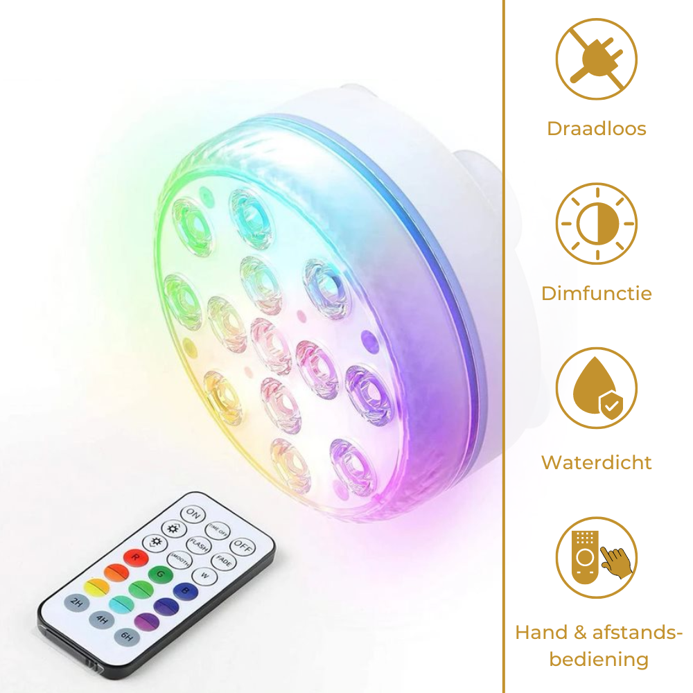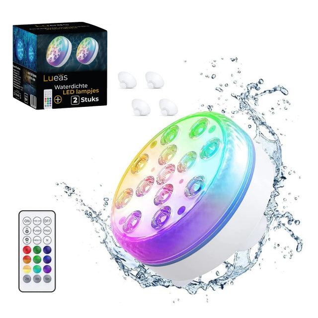 Deze waterdichte lampen zijn ideaal voor in een aquarium, zwembad of onder de douche. De lampen werken op AAA batterijen en kunnen bediend worden door middel van een afstandsbediening. De draadloze lampen kunnen gemakkelijk bevestigd worden door de meegeleverde zuignappen.